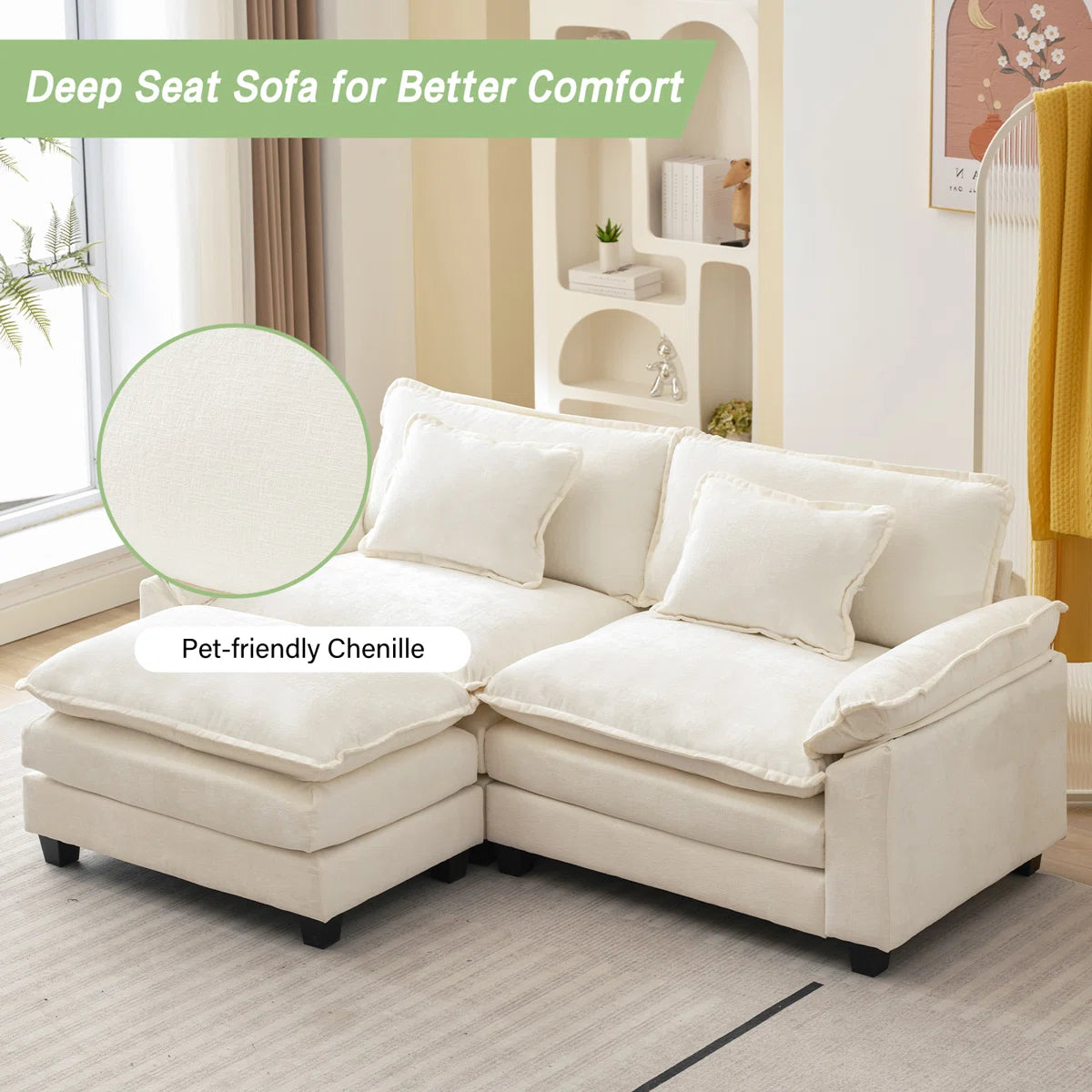 Arale 86'' Wide Comfy Cloud Couch Sectional Loveseat Sofa with Ottoman